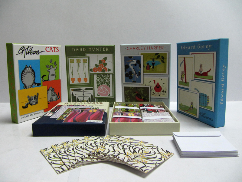 Loose cards, bound into books, gift boxes